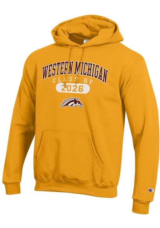 Mens Western Michigan Broncos Gold Champion Arch Pill Class of 2026 Powerblend Hooded Sweatshirt