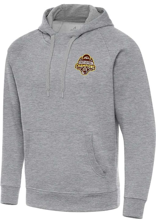 Mens Western Michigan Broncos Grey Antigua 2025 Hockey National Champions Victory Hooded Sweatshir..