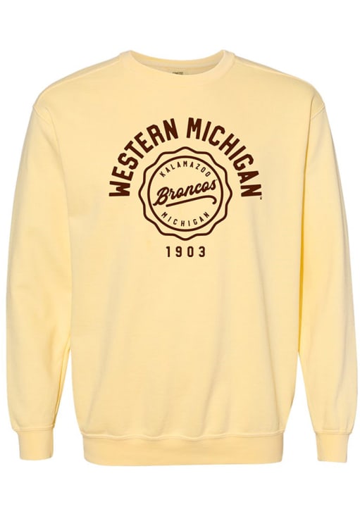 Gear up for the ultimate game day experience with this remarkable Western Michigan BroncosWomens Yellow Seal Crew Sweatshirt! Designed with the true fan in mind, this Broncos Long Sleeve Sweatshirt features a screen print team name and faux seal on full chest. Stay warm and comfortable with this Womens WMU Broncos Broncos Crew Sweatshirt.
