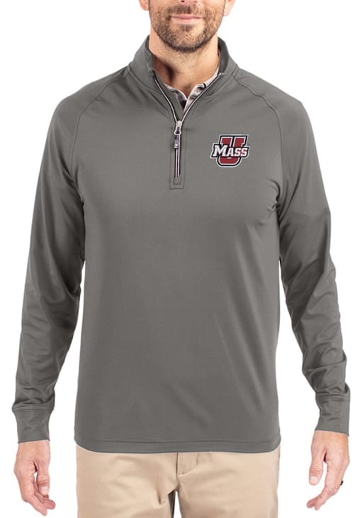 Mens Massachusetts Minutemen Graphite Cutter and Buck Adapt Eco Knit Qtr Zip Pullover