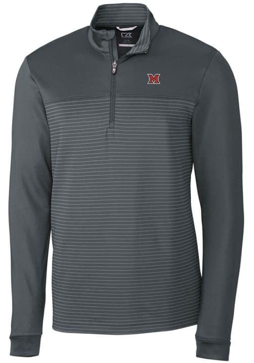Embrace the warmth and showcase your Redhawks pride with our Miami RedHawks Long Sleeve Qtr Zip Pullover. This Mens Grey Traverse Stripe Stretch Long Sleeve Pullover offers a high quality 2-ply DryTec matte finish polyester for the perfect combination of comfort and style. Elevate your everyday look with this must-have Miami RedHawks Long Sleeve Qtr Zip Pullover.