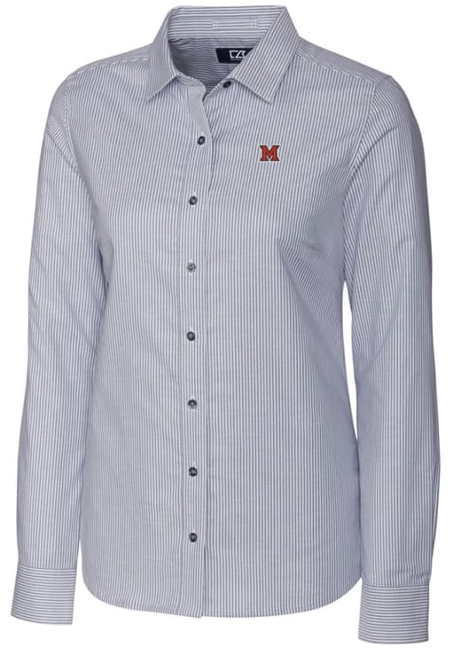 Show your Redhawks spirit show in the office with this Miami RedHawks Dress Shirt! Embrace your team spirit and showcase it proudly in this Womens Charcoal Stretch Oxford Stripe Long Sleeve Long Sleeve Button Down Shirt. This Long Sleeve Dress Shirt features a high quality Easy Care Stretch fabric.