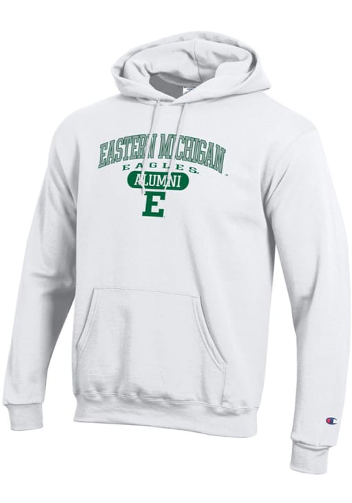 Mens Eastern Michigan Eagles White Champion Pill Box Alumni Powerblend Hooded Sweatshirt