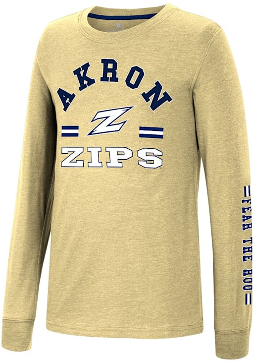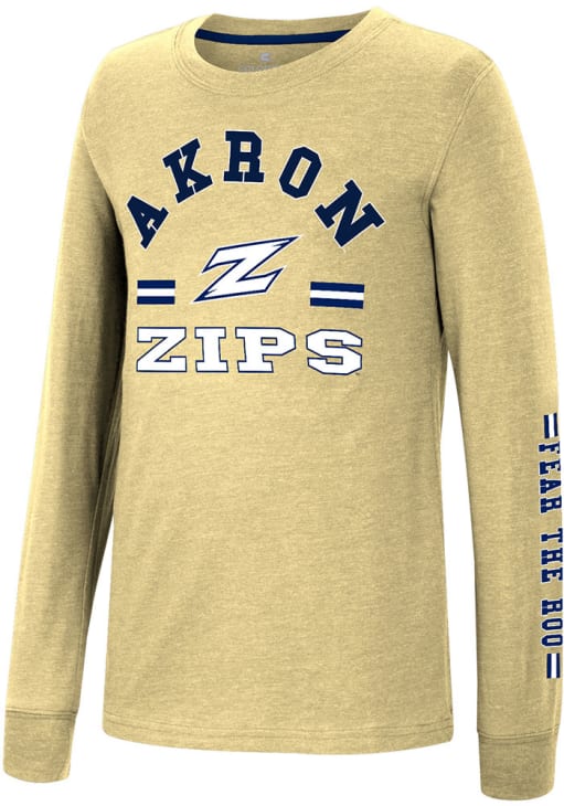 Size Chart for Youth Akron Zips Gold Colosseum GCC SMU Roof Long Sleeve T-Shirt