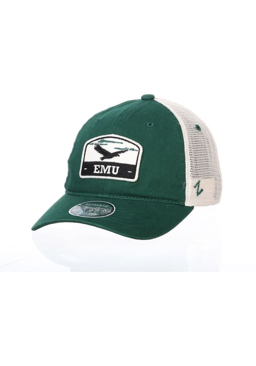 Product Details Product Details Zephyr University Meshback3D Embroidery on the frontMatching crown and visorContrast meshbackAdjustable ClosureCotton & polyester blend materialCotton/Poly BlendCurved BillLow CrownUnstructuredWipe clean with cloth or cleaning kitImported Officially Licensed This Green Eagles Adjustable Hat features a front team logo.
