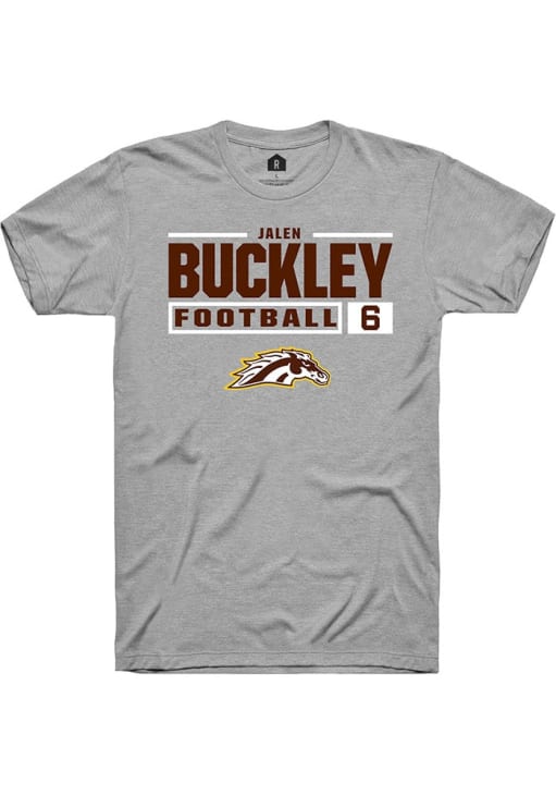 Jalen Buckley Grey Western Michigan Broncos Football NIL Stacked Box Short Sleeve T Shirt