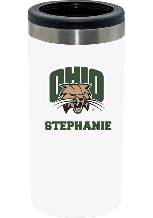 White Ohio Bobcats Personalized Slim Can Stainless Steel Coolie