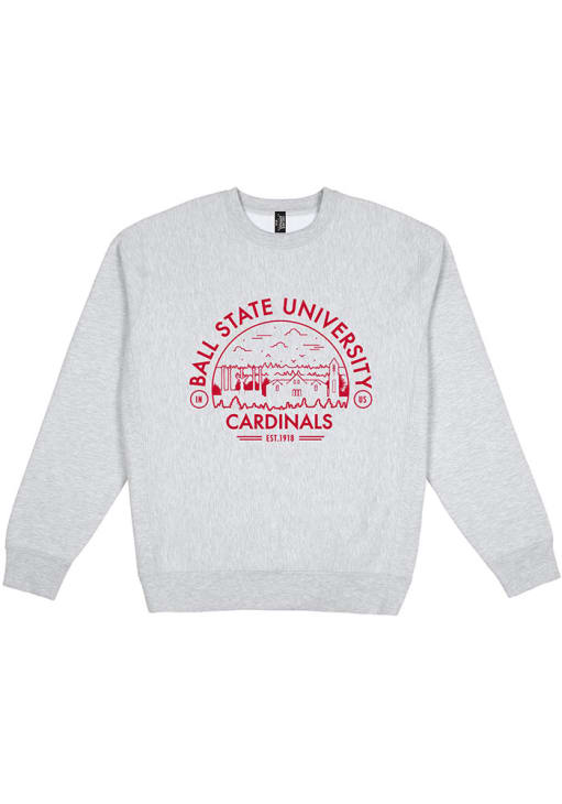 Mens Ball State Cardinals Grey Uscape Premium Heavyweight Crew Sweatshirt